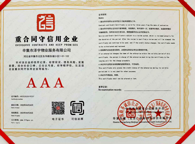 | 企業(yè)信用評價(jià)AAA級(jí)信用企業(yè) |